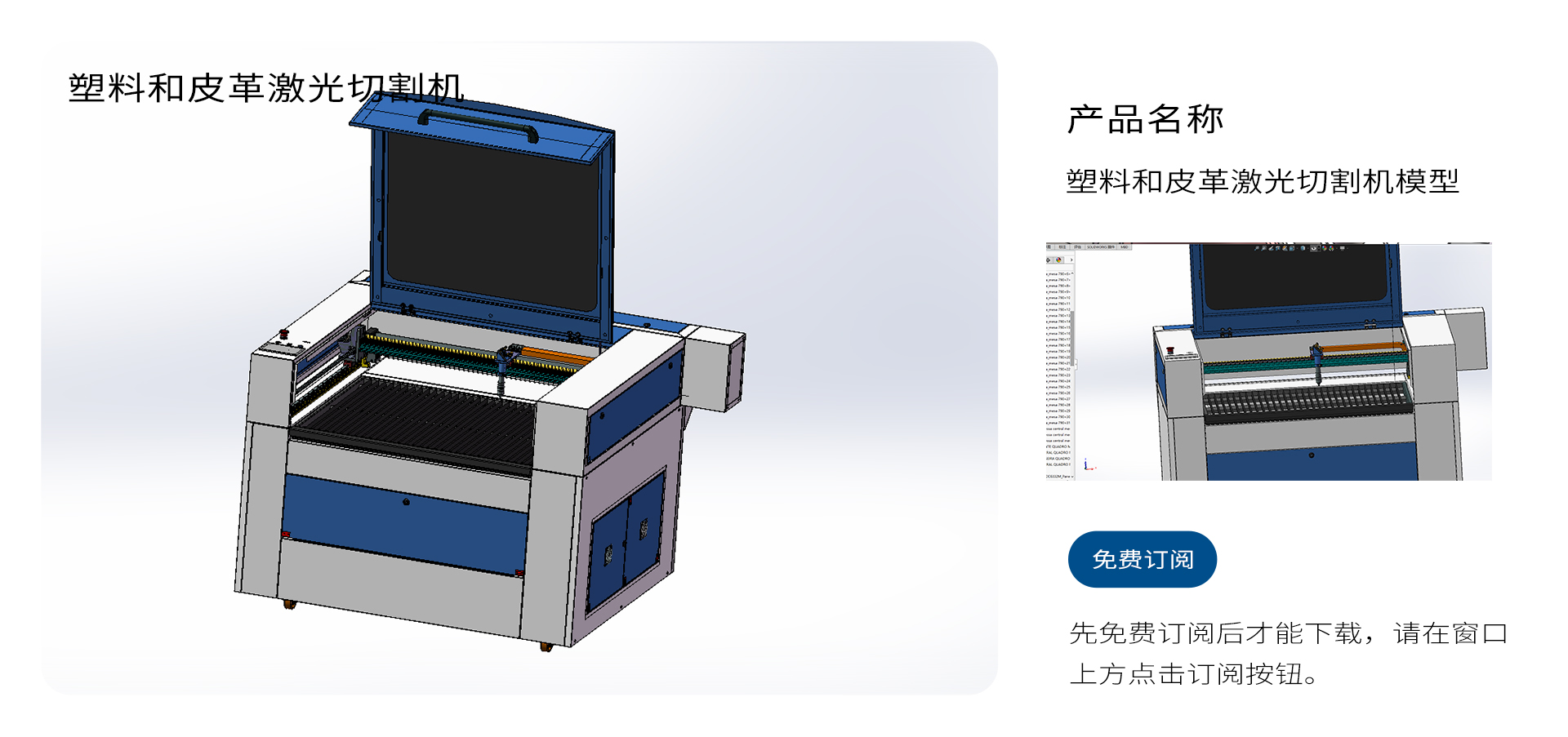 塑料和皮革激光切割机3D数模图纸 x_t格式模型,订阅后免费下载