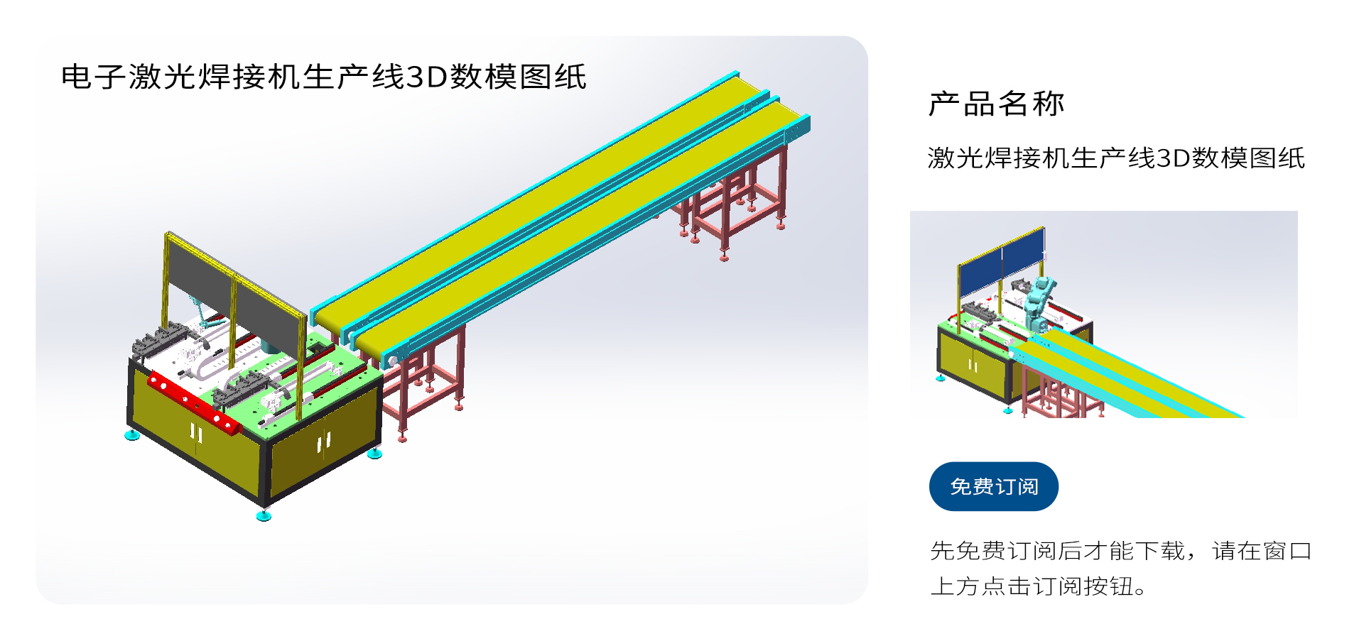 电子激光焊接机生产线3D数模图纸 ,订阅后免费下载