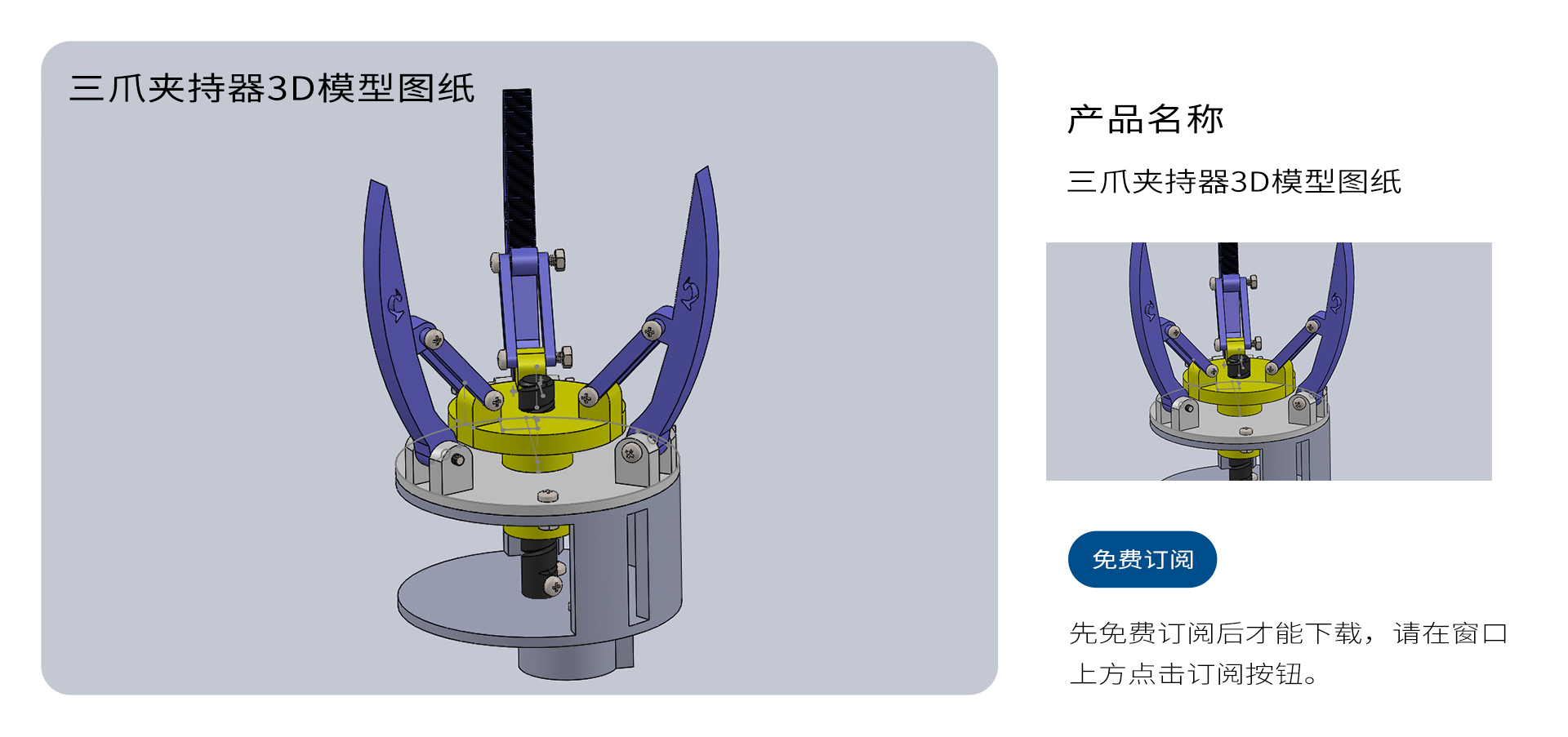 三爪夹持器3D模型图纸 Solidworks设计,订阅后免费下载