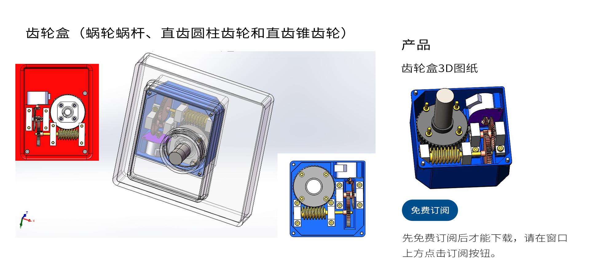 齿轮盒(蜗轮蜗杆、直齿圆柱齿轮和直齿锥齿轮)3D图纸